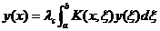 Because the series (5) converges uniformly within k 0 , for any fixed value x on [ a , b ] , it converges uniformly with respect to x within the interval , so the solution of integral equation (1) is obtained