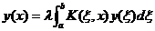 [ Linear integral equation ] Equation containing unknown function y ( x ) under integral sign