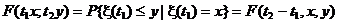 That is, the conditional distribution F ( t 1 , x ; t 2 , y ) only depends on t 2 - t 1 , x , y , then { x ( t ) , t Î T } is a time- aligned ) of the Markov process.