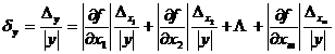 Suppose a function representing m independent variables , if the maximum absolute errors of the independent variables are respectively , then the maximum absolute error and the maximum relative error of the function y are respectively