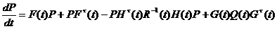 In the formula, Q ( t ) and R ( t ) are both continuously differentiable, symmetric and non-negative definite matrices for time t ; they are Dirac functions. And F ( t ) , G ( t ) and H ( t ) are respectively matrices whose elements are non-random functions or constants of t .