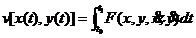 The functional of , where the function under the integral sign does not contain an independent variable t explicitly , and is a first-order homogeneous function for and , namely