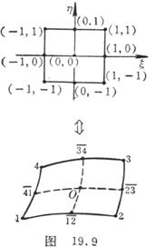 3° It can be known from the model ( 14 ) that the compatibility of coordinate transformation between equal parameter units is equivalent to the continuity of the interpolation function. If the number of node parameter values on the boundary is equal to the number of terms of the interpolation polynomial, the value of the interpolation function of two adjacent elements on the common boundary can usually be uniquely determined by their common node parameter values , and the continuity is guaranteed . In the same way , the parameter expressions of the coordinates on the common boundary are also completely determined by the coordinate values of its nodes , so that their coordinate transformations are kept compatible on the boundary. For example , from the type function of the twenty-node hexahedron, it can be seen that its interpolation polynomial includes ξ , η , ζ cubic polynomial 17 terms (that is, the 20th term does not appear in the third-order term) and then adds three quartic terms , for any one For a side (eg ζ = 1 ) , the interpolation function (pair ξ , η ) is biquadratic with a total of 8 terms , equal to the number of nodes (parameter values) on that side. therefore, as long as the adjacent units adopt the same interpolation mode , the compatibility condition is satisfied. Note that increasing the number of nodes (parameter values) can only increase the degree of the interpolation polynomial to a certain extent , but cannot solve the problem that its derivatives remain continuous along the common boundary . For such problems, it is not appropriate to use equal-parameter units . Use the coordinating unit .