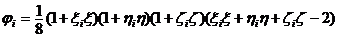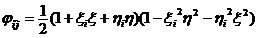 4° It can be seen from the composition of the shape function of the nine- and ten-node triangular elements that if the interpolation function is not restricted , it is not unique . For example , for a fifteen-node pentahedron or a twenty-node hexahedron , three parallel The plane ζ = ζ +1 = ζ - 1 = 0 can pass through all nodes. This means adding the cubic term of ζ to the prototype function { } , as long as = 0 it is still a set of type functions. The restriction of the twenty-node hexahedron element on the interpolation polynomial has been described in 3 o (that is, the three terms in the cubic polynomial are removed , and only three terms are added in the fifteen quartic terms : ) , in this restriction (that is, for each All coordinate variables are quadratic) , the type function is unique (for example , since the cubic term of ζ does not appear , it can only be zero). same