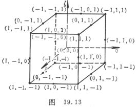 The twenty-noded hexahedron consists of eight vertices and the midpoints of twelve edges ( Figure 19.13) . Its type function is