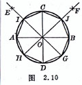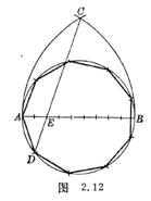 [ The known circumscribed circle is an arbitrary regular polygon ( approximate method )] Divide the diameter AB n into equal parts ( n is the number of sides ), take A , B as the center, AB as the radius, draw an arc to intersect C , connect C with the second division Point E , and extend the intersection circle to D , take AD as the radius to cut the circle in sequence, and connect the points, that is, the regular n -gon ( regular nonagon in Figure 2.12 ).