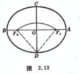 [ Track method ] Take the long axis AB = 2 a and the short axis CD = 2 b , perpendicularly bisect each other at O , take D as the center, a as the radius, and draw an arc to intersect AB at . The two ends of the line of 2 a are fixed on the nails, and then the line is tightened with a pencil, and the curve drawn by moving the pencil is an ellipse ( Figure 2.13 ).