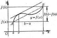 [ Mean Value Theorem ] If (i) f ( x ) is defined on the closed interval [ a , b ] and is continuous, and (ii) there is a finite derivative in the open interval ( a , b ) , then between a and b There is at least one point c between them , which satisfies the equation
