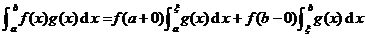 3° If the functions f ( x ) and g ( x ) are bounded and integrable on the interval [ a , b ] , and f ( x ) is monotonic on [ a , b ] , then on the interval [ a , b ] ] at least one number ξ ( a < ξ < b ) exists such that