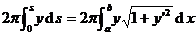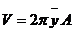 S = or S =2 where s represents the curve equation on , s represents the length of the curve on , d s is the differential of the arc, and is the center of gravity of the curve The distance from G to the axis of rotation . |