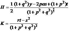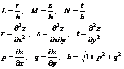 In the formula, E , F , G are the first fundamental quantities of the surface, L , M , N are the second fundamental quantities of the surface.