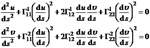 The differential equation for geodesics is also written as or