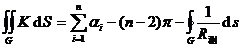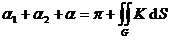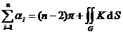 Let the geodesic curvature representing any point on the curve C be the surface area element, and be the interior angles of the corners of C ( figure ), then the double integral on G