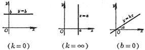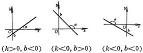 k is the slope . If the intersection angle between the line and the x -axis is a , then 0 £ a < p . b is the vertical intercept