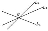 For a certain value of l, L l represents a straight line passing through the intersection point G of two straight lines ( L 1 and L 2 ) . When l takes all values, the whole of the straight lines that L l represents passing through G is called a straight line bundle, G is called the vertex ( or center ) of the bundle of lines. Let L 3 be A 3 x + B 3 y + C 3 = 0 , then the condition for the three straight lines L 1 , L 2 , and L 3 to have the same point is the determinant If the equation of the two straight lines is given in the normal form, then | l | is the ratio of the distance between any point on the straight line L l and the two given straight lines, and the lines corresponding to l = 1 and l = - 1 are the given two straight lines Bisector of included angle