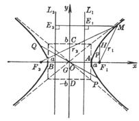 where r 1 , r 2 are the focal radius, p is the focal parameter, a is the angle between the focal radius of the point M ( x , y ) and the tangent, in particular, the curvature radius of the vertices A , B