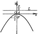Directrix L ( perpendicular to the axis of the parabola, the distance from the vertex A equals , and the distance from the focus F equals p )