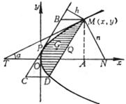 The equation of the tangent MT at a point on a 2 ° parabola is
