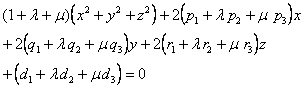 For the ellipsoids, hyperboloids, paraboloids, etc. listed above , their equations are quadratic about x , y, and z . The general quadratic equation for x, y, and z is in the form of