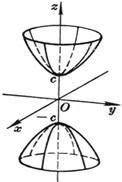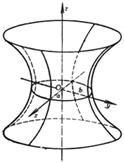 [ Single leaf hyperboloid ] [ Futaba Hyperboloid ] When a = b , it is [ Rotating Hyperboloid ] ( curve on the Oxz plane obtained by rotating around the z -axis ) |