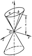 [ Elliptical Cone ] When a = b , it is a conical surface ( The line on the Oxz plane is obtained by rotating around the z axis ) |