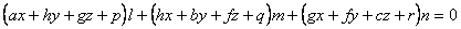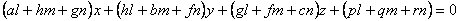 When l , m , n vary , this equation represents a plane , and the diameter planes of the quadric form a plane . Any plane in the plane passes through the intersection of the following three planes :