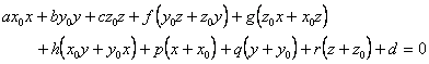 [ Tangent plane and normal of quadric surface ] The equation of the tangent plane of the quadric surface at a point M ( ) is