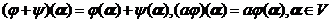 The sum and multiplication of two functions of the set of linear functions in V are defined in the usual way as follows: